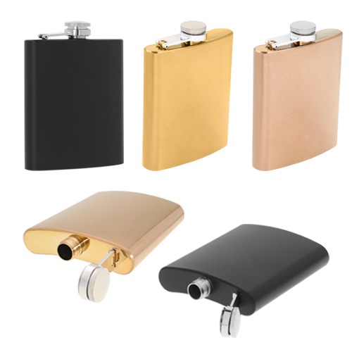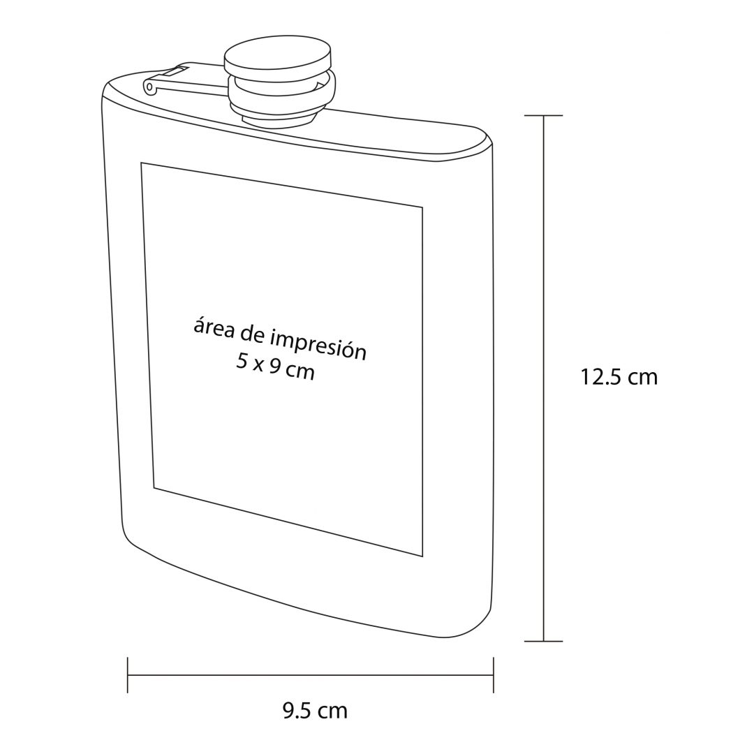 Descripción: Licorera de bolsillo de acero inoxidable con tapa enroscable. Cap. 7 Oz.
