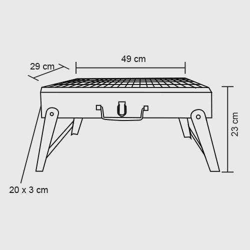Asador portátil de acero inoxidable con diseño plegable de sporte reforzado. Su innovador diseño contiene muñequeras en ambos lados de la parrilla, que se pueden doblar y guardar cuando no se usan. Hay orificios de ventilación en ambos extremos, lo que permite controlar el flujo de aire y distribuir uniformemente el calor. El paquete incluye: 1 cuerpo de parrilla, 1 parrilla cromada, 1 bandeja de cenizas de carbón y 1 rejilla de alambre para carbón.