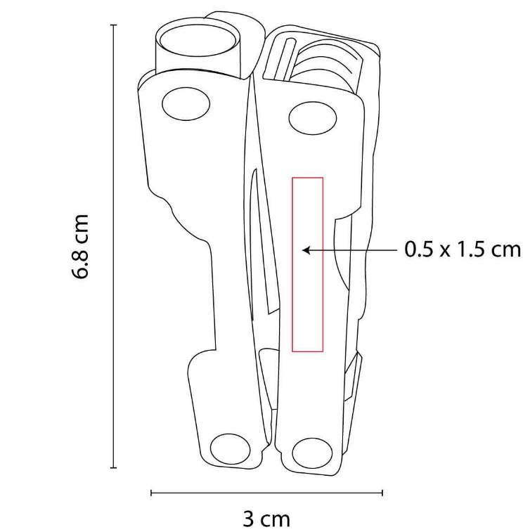 Mini pinzas de 7 funciones, cuenta con lámpara de 1 LED, navaja, desarmador de cruz, serrucho, destapador con punta de desarmador plano. Incluye funda y 3 baterías de botón.