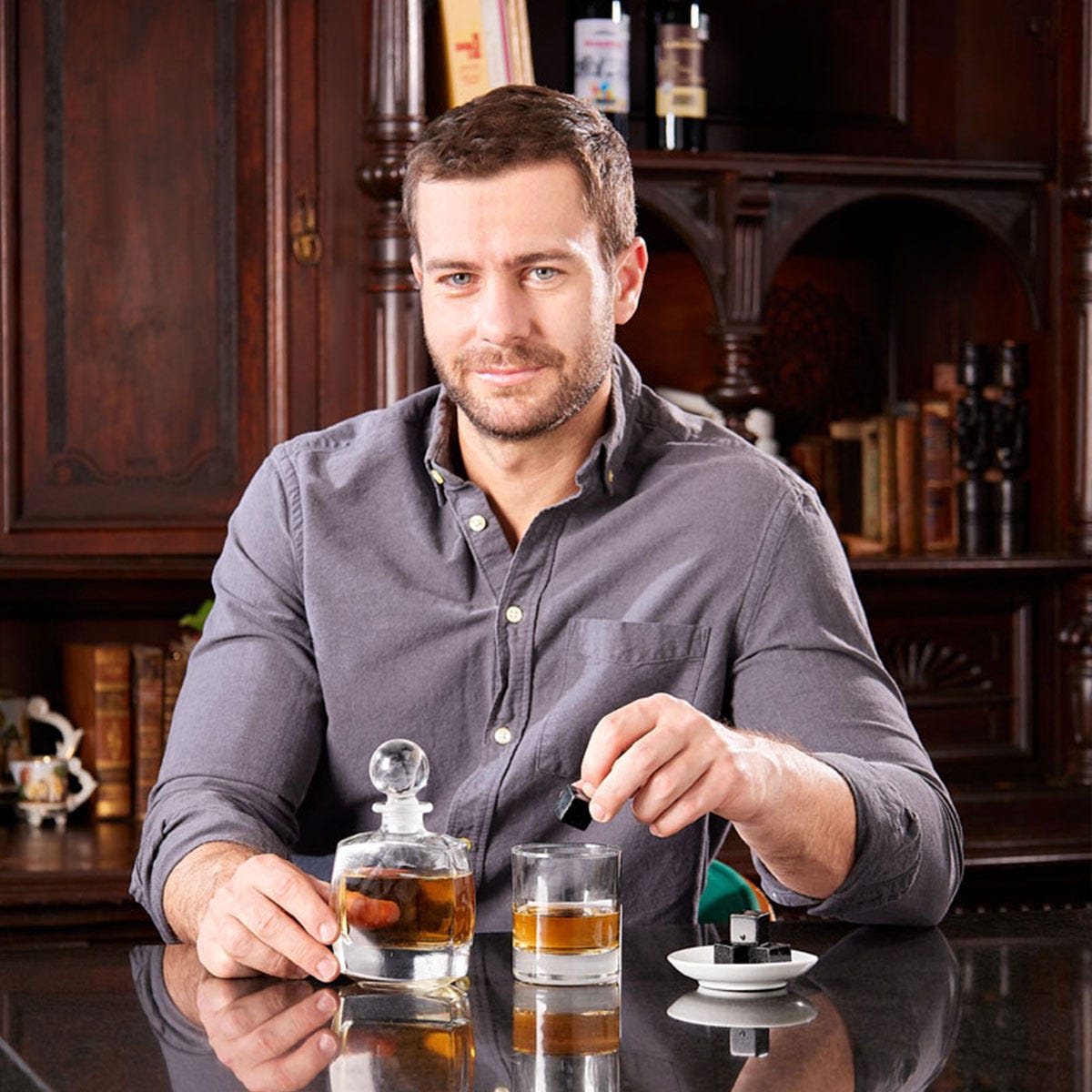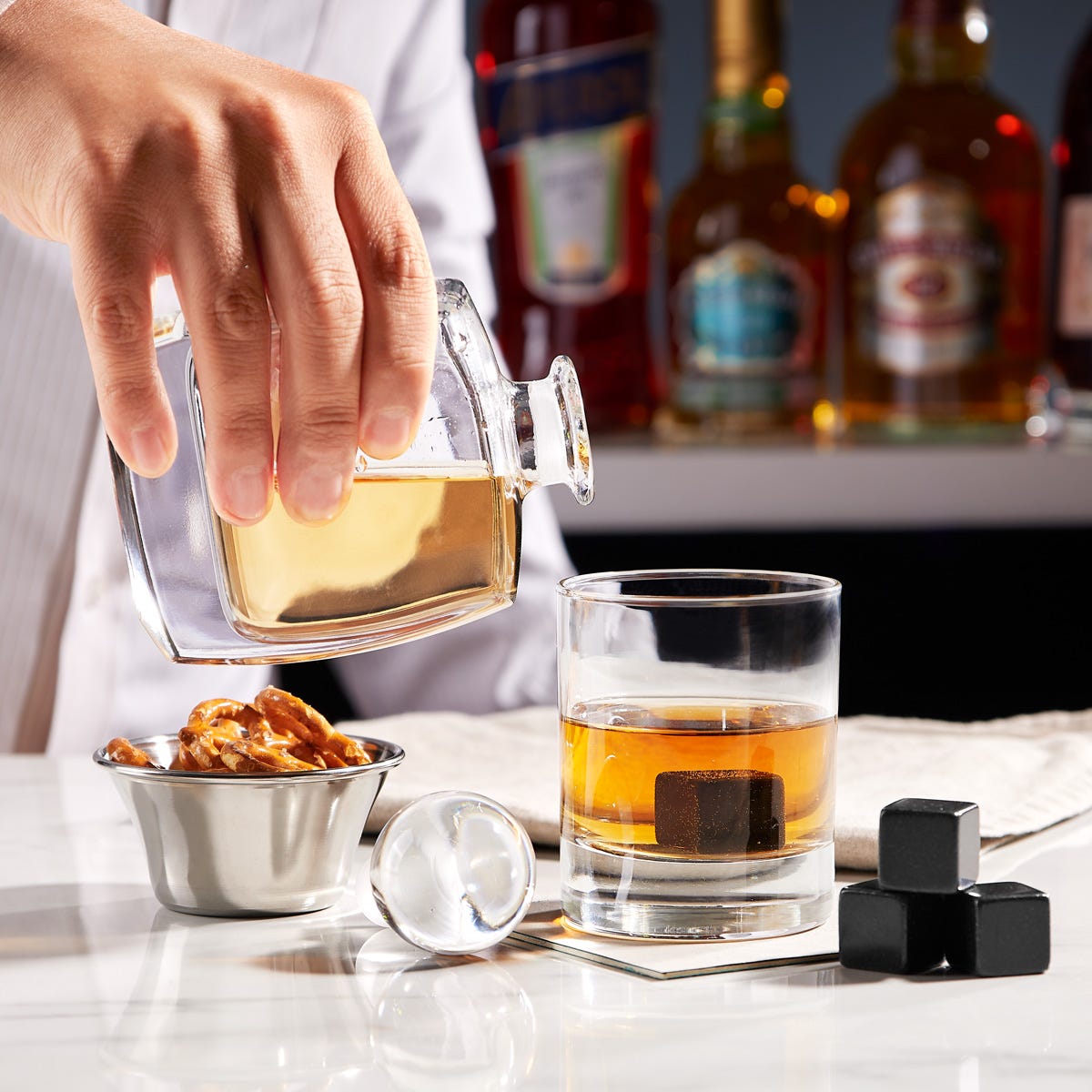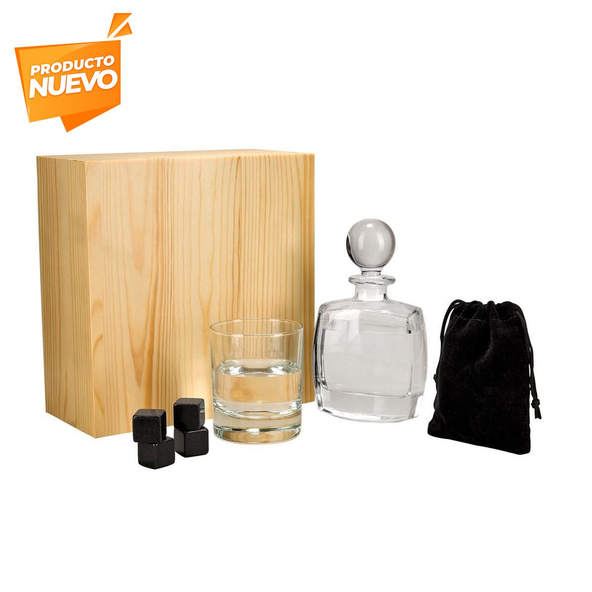 Convierte cada trago en un ritual de estilo. Este Set de Bar incluye licorera, vaso de cristal, 4 enfriadores de piedra, bolsa de terciopelo y estuche de madera. Perfecto para obsequiar o consentirte con una experiencia sofisticada.🎁 “El regalo que impacta: elegancia, utilidad y presentación en un solo set.”