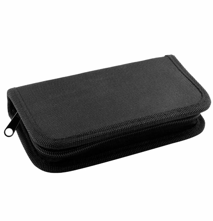 Contiene desarmador, 10 puntas de desarmador, llaves hexagonales, dado extensión y 4 dados. Incluye estuche de tela.