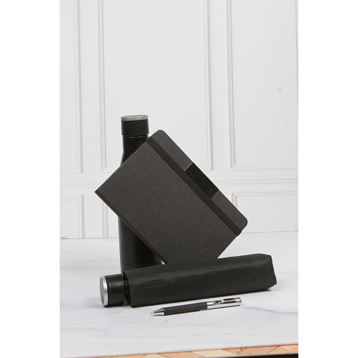 INCLUYE: TERMO 26.3 X 7 CM / LIBRETA 21.3 X 14.7 CM PARAGUAS 25.5 X 5 CM