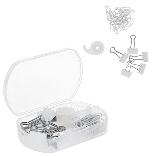 INCLUYE: 10 CLIPS, 5 CLIPS SUJETA DOCUMENTOS Y DESPACHADOR DE CINTA ADHESIVA