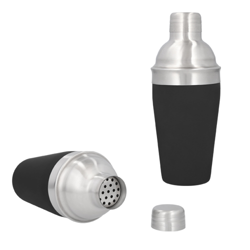 Shaker de acero inoxidable con acabado rubber y tapa metálica a presión con coladera.