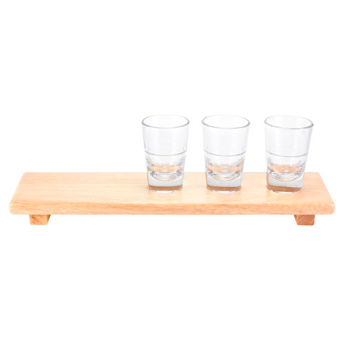 Descripción: TABLA RAUMA (Tabla de madera con 3 vasos de cristal de 2oz.)