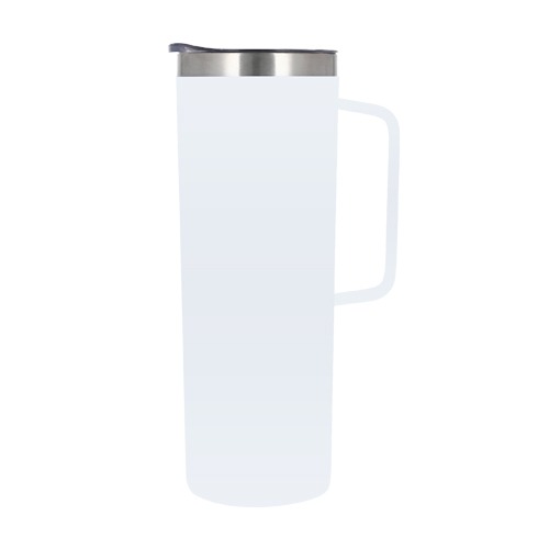 TERMO CON DOBLE PARED DE ACERO INOXIDABLE INSULADO AL VACÍO. INCLUYE UNA TAPA TRANSPARENTE DE CIERRE A PRESIÓN CON SEGURO DESLIZABLE, ASA Y UN ACABADO RUGOSO.