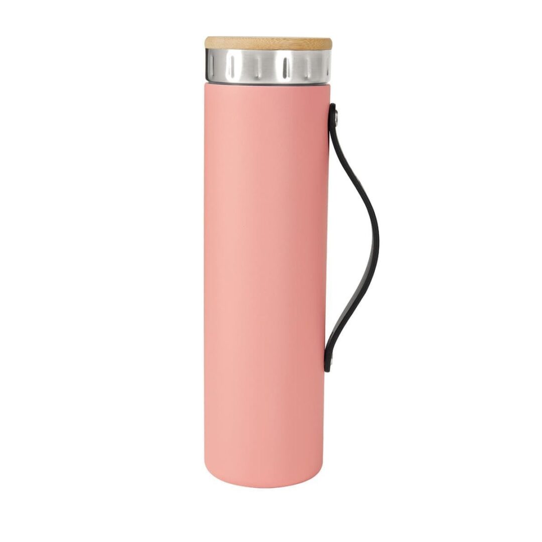 TIENE TRIPLE PARDE DE REVESTIMIENTO sin duda solo para exigentes, Material BPA free. Tapa de bambú. Contiene filtro de acero inoxidable. Banda de silicón ajustable y removible. Terminado rugoso
