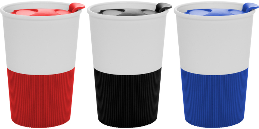 Vaso con tapa y manga de silicon de 350 ml ideal para tu cafe de la mañana en tu casa o en la oficina sin duda tiene el tamaño ideal