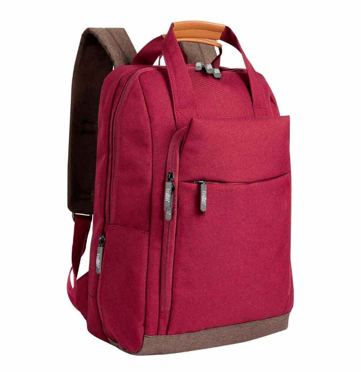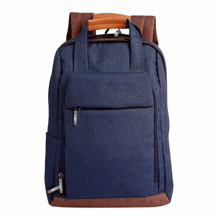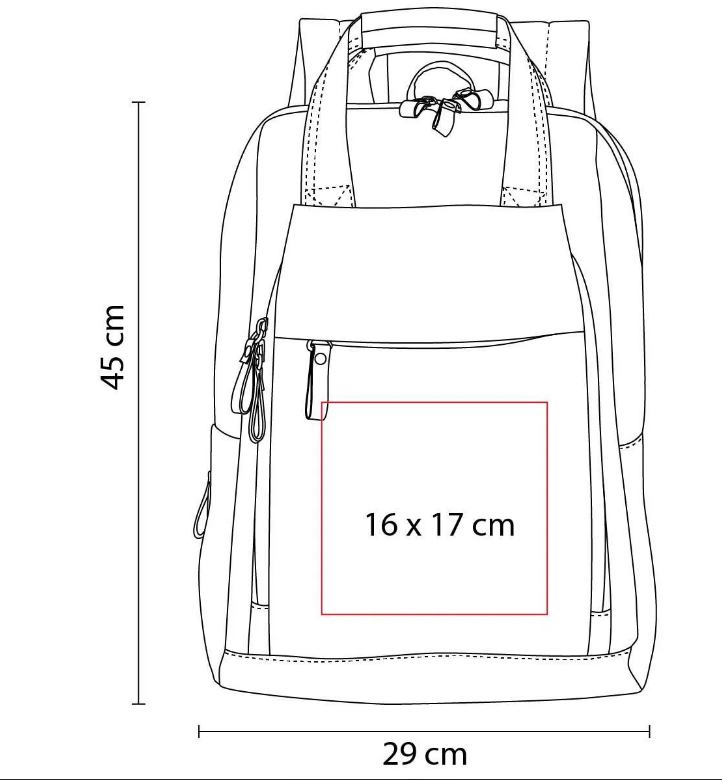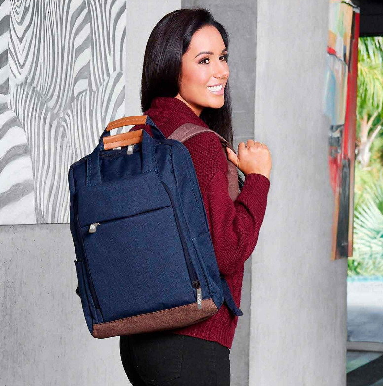 Bolsa principal. Espacio para laptop y tablet. Bolsa frontal con organizador, bolsa con cierre y red. Cuenta con un compartimento oculto en la parte posterior.
